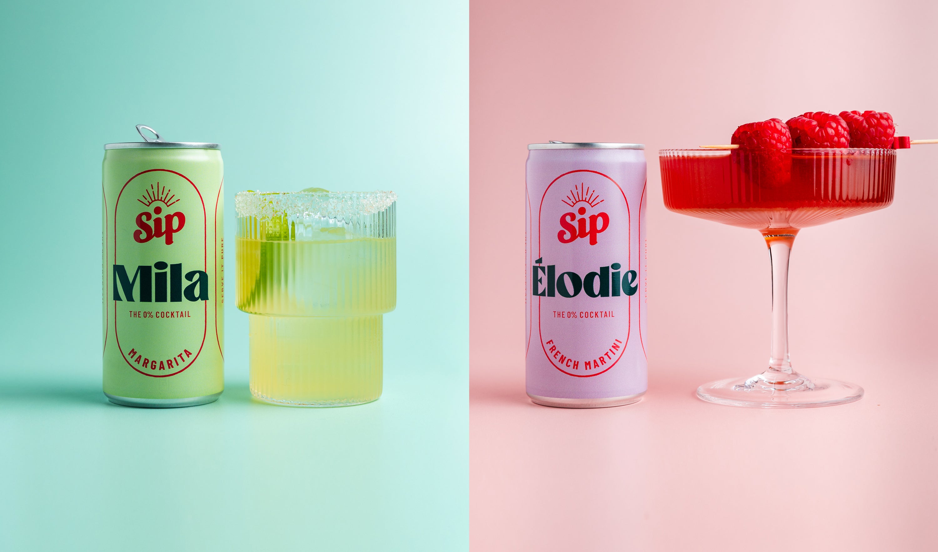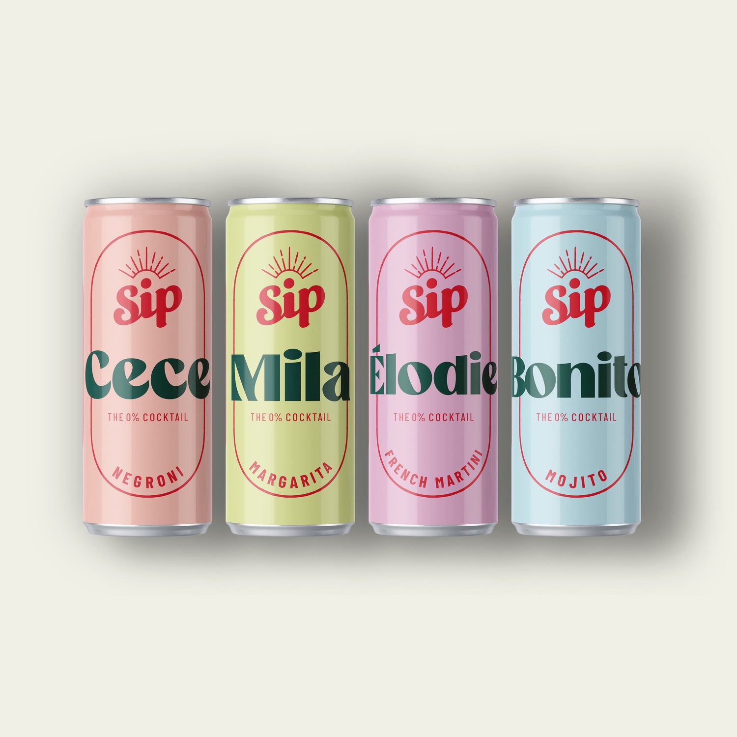 Cece, a bartender's classic redefined with 0% Gin and Aperitivo. Mila, reimagine your Margarita moment, made with 0% Tequila. Élodie, an elegant twist on a classic French Martini, redefined with 0% Gin. Bonito, a timeless Mojito, made modern with 0% Aged Rum.